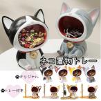 置き物 皿を捧げるねこ 猫ちゃん キー収納 金属 トレイ 鍵置き 小物収納 玄関収納 卓上置物 収納トレイ 動物像 彫刻装飾 コイン キャンディー皿 樹脂製品