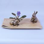 置物 干支(黄銅製・銀製)卯・兎・うさぎ 菫に子兎 二羽 現品限り