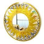 壁掛け バリ モザイクミラー 鏡 S D.30cm 丸型 黄色・ラメ 太陽 丸い鏡 アジアン雑貨 バリ雑貨 おしゃれな鏡 アジアンインテリア