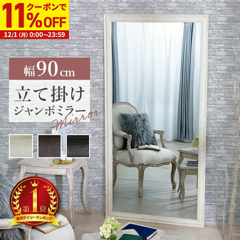 【クーポンで11%OFF★12/1 0:00〜23:59】 全身鏡 姿見 鏡 ミラー 幅90 全身 姿鏡 韓国 風 アンティーク 調 大型 W90 ホワイト ブラウン ライトブラウン 幅90 立て掛け ビッグミラー 全身鏡 ダンス用ミラー 姿見 ジャンボミラー ガラス製ミラー