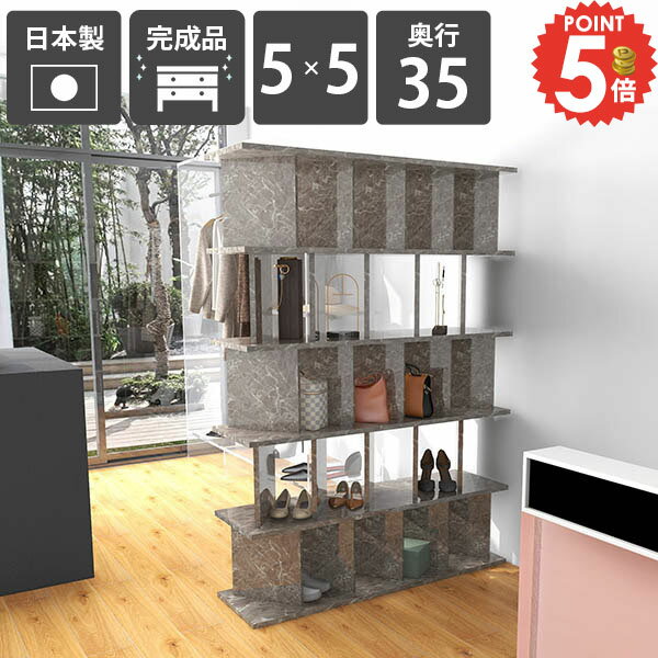 パーテーション おしゃれ 自立式 書棚 日本製 ディスプレイラック 高さ172cm 衝立シェルフ ラック 間仕切り棚 大理石風 パーテーションラック 収納 幅123.5cm 什器 GrayStone 目隠し ついたて メラミン 完成品 ブックシェルフ 5×5 キッチン 奥行35cm シェルフ ☆