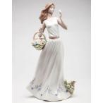 フラワーバスケットを手にするレディー ポーセリン 陶磁器 置物