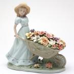 フラワーカートを押す少女 ポーセリン 陶磁器 置物