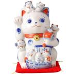 招福づくし 招き猫 置物 磁器 染付 右手上げ 日本製 家内安全 お金を招く 開業祝い 開店 オープン 縁起物 お守り 記念品 贈り物 可愛い