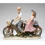 自転車に乗る女性と愛犬 陶磁器 ポーセリン 置物