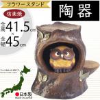 花台 フラワースタンド おしゃれ 人気 おすすめ 陶器製 信楽焼 国産品 日本製 インテリア 園芸用品 ガーデニング ギフト フクロウ 梟 古株ふくろう付花台 14号