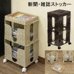 新聞ストッカー ラタン調 雑誌ストッカー キャスター付 BR/IV 送料無料 tme21