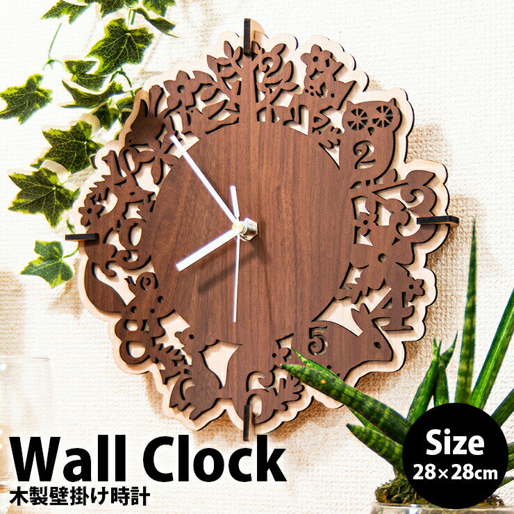 ★10%OFF★ 壁掛け時計 木製 アニマル動物たち ウォールクロック 壁時計 組立説明書付き 約27cm幅 アジアンテイスト おしゃれ 据え置き ウォールナット メープル 国産MDF おしゃれ 国産 北欧 woodハンガー 組み立て レーザー加工 雑貨 時計004