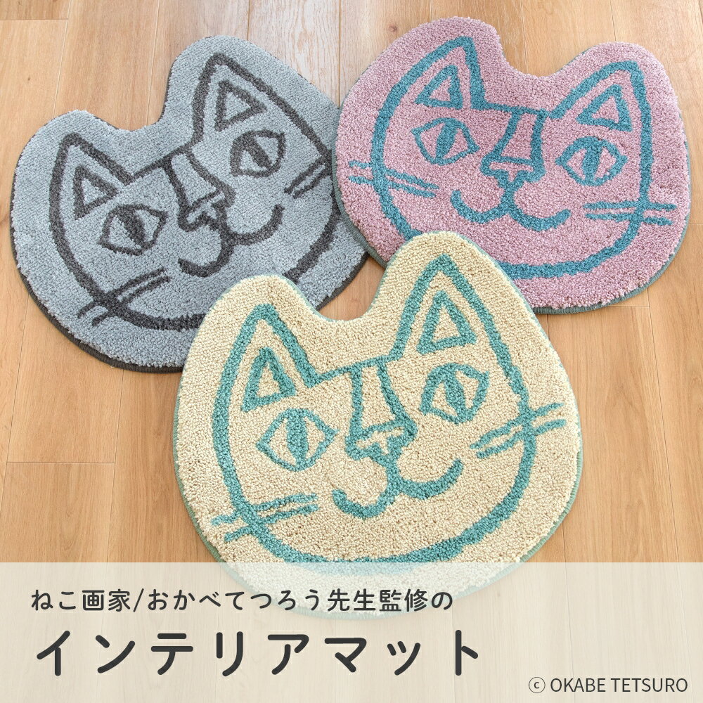 【10%OFF★12/4 20時〜】おかべてつろう インテリアマット 約50×55cm ( マット ラグ リビング バスマット 洗面所 玄関マット 洗える 洗濯可 おしゃれ シンプル 猫 猫柄 ねこ cat 足拭きマット アニマル 北欧 可愛い 雑貨 ギフト プレゼント 誕生日 バス用品 風水 )