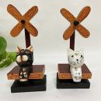 アジアン バリ 雑貨 ♪風車の下お座りネコ(ブラウン・ホワイト)♪ インテリア おしゃれ エスニック 置き物 オブジェ 動物 アニマル バリ猫 木製