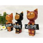 【あすつく】アジアン バリ 雑貨 ♪WELCOMEプレートネコ(黒・三毛・赤茶)♪ インテリア おしゃれ エスニック 置き物 オブジェ バリ猫 アニマル