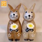 木彫り ウサギS カップル うさぎ グッズ 置物 かわいい 木製 オブジェ 人形 うさぎ好き プレゼント バリ雑貨 インテリア小物