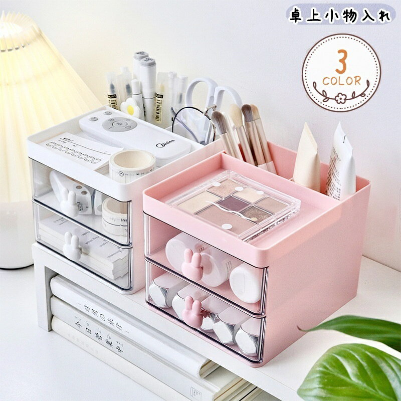 送料無料 卓上小物入れ 卓上引き出し ペン立て ペンホルダー トレー 収納雑貨 収納グッズ 卓上収納 四角形 スクエア 2段式 ウサギ 兎 無地 透明 クリア ホワイト ピンク ブルー シンプル カジュアル 可愛い キュート ガーリー ポップ おしゃれ
