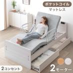 スマホで操作OK 2モーター 電動ベッド ポケットコイル セット 専用 マットレス 付 USBポート ライト シングル セミダブル ダブル リクライニング ベッド リクライニングベッド 無段階調節 介護用 【超大型】【後払/時間指定NG】