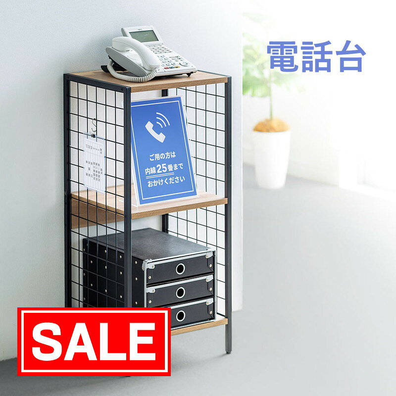 【スーパーSALE!限定価格】電話台 FAX 受付 脇机 置台 マルチスタンド シェルフ メッシュ アイアン 木目 EEX-DKSH05-2