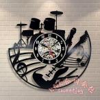 壁掛け時計 ビニールレコード 歯車 音楽モチーフ ギター 音符 ドラム Welina(株) おしゃれ 北欧 アナログ インテリア シルエット 楽器 モダン かわいい