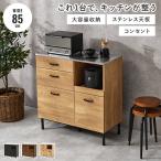 キッチンキャビネット CKC-7160 幅85cm 収納棚 食器棚 リビング 台所 チェスト 棚 可動棚 収納 整理 扉付き 木目調 引き出し ステンレスを天板 コンパクト