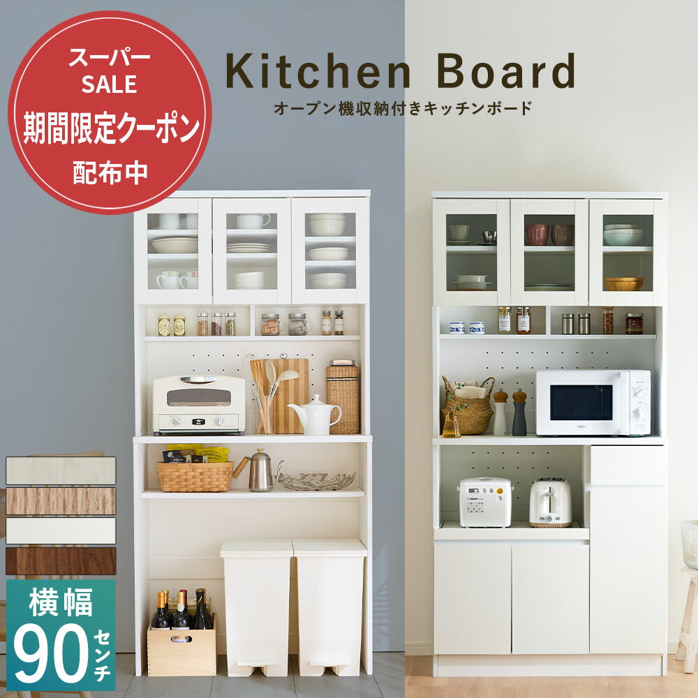 食器棚 おしゃれ 収納 北欧 キッチンボード カップボード 幅90 レンジ台 ハイタイプ 食器 棚 キッチン収納 レンジボード