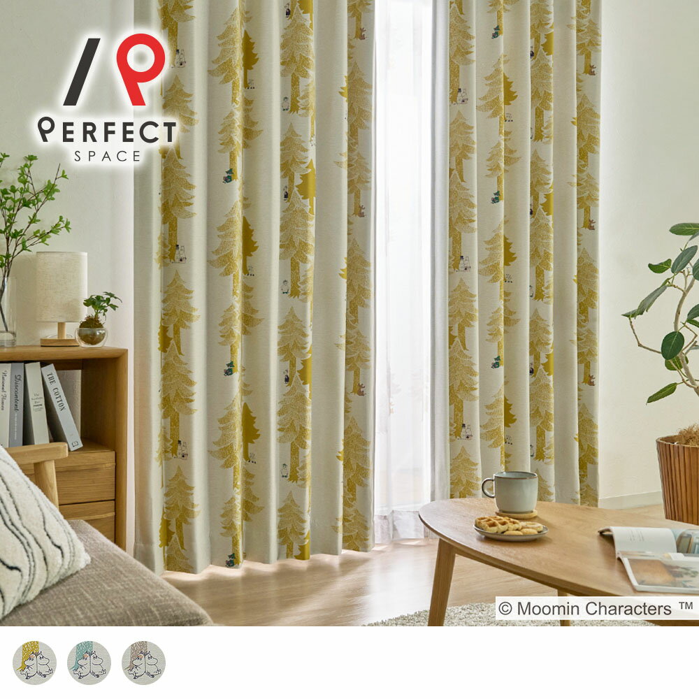 【ムーミン】2級遮光カーテン ムーミン谷の住人が大集合!縦ストライプ状に並んだ北欧の木々から覗くムーミン谷の仲間たちの姿が可愛らしい2級遮光カーテン <プート ドレープ>
