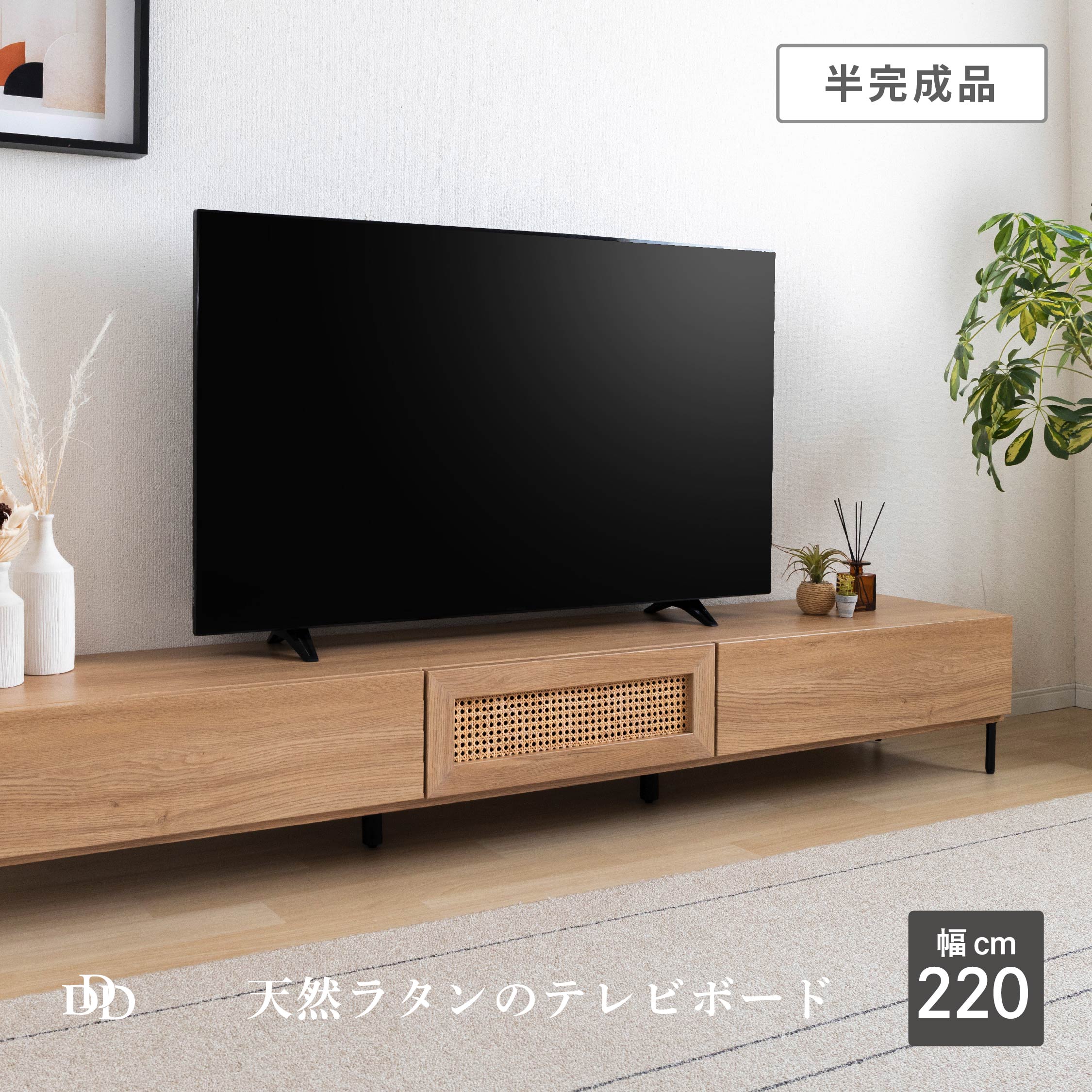 【P15倍&10%OFF! 4/25限定】 【開梱設置付】テレビボード 完成品 テレビ台 220cm オーク調 ラタン ローボード 大型テレビ テレビボード 220 TVボード 220幅 木目調 ホワイト モダン リビング収納 引き出し 幅220cm テレビボード ラタン AVボード TVラック 引き出