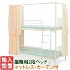 2段ベッド マットレス付き 三方防炎カーテン 業務用 スチールベッド 二段ベッド ウレタンマットレス×2 防炎認定 頑丈 宿舎 宿泊 寮 オフィス 仮眠室 待合 事務 医療 耐久性 IBS-203C+IBM-301×2 【法人様宛限定】
