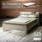 セミダブルベッド 床板すのこ セミダブル ベッド 収納棚 ベッドフレーム スノコ コンセント付き LED照明付き 脚付き 宮付き 棚付き 2口コンセント