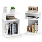 【並行輸入品】Tangkula S字型サイドテーブル、オープン収納棚付き3段ウッドエンドテーブル、滑り止めフットパッド、モダンなアクセントベッド