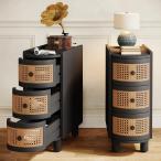 【並行輸入品】Tribesigns 3段引き出しラタンエンドテーブル、ソファサイドテーブル、ヴィンテージエンボスハンドル付き、スリムナイトスタン
