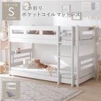 (タイムセール中) 2段ベッド ロータイプ ショート丈シングル マットレス付き 3つ折りポケットコイル コンパクト 子供部屋