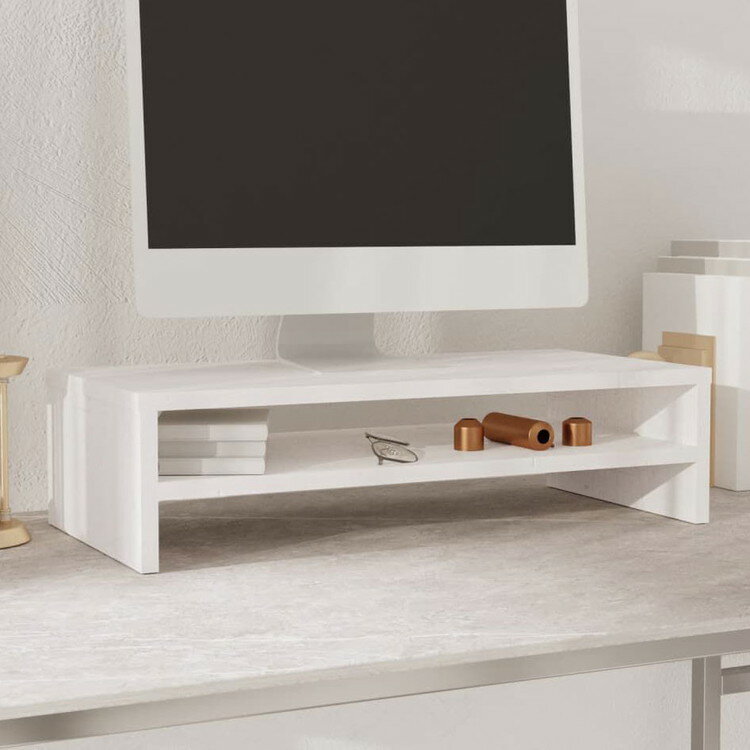 vidaXL モニタースタンド ホワイト 50x24x13 cm パイン無垢材家具AVラック・テレビ台(代引不可)