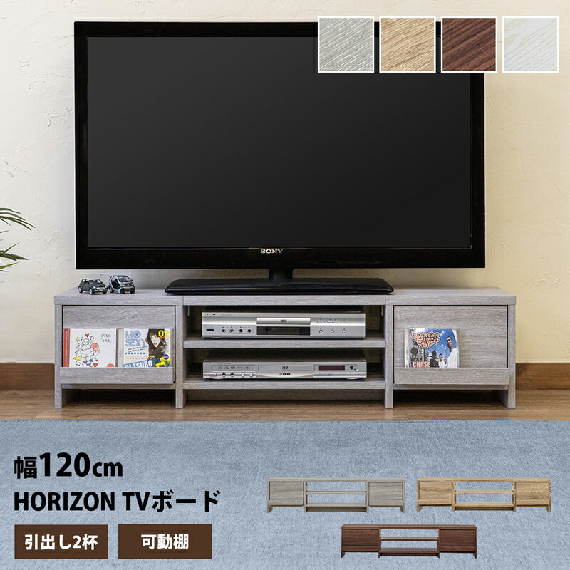テレビ台 テレビボード 幅120cm テレビラック HORIZON TVボード 収納 AVラック オープン収納 可動棚 ディスプレイラック 収納 ローボード スタイリッシュ おしゃれ 引出し2杯 リビング整理 スペース活用 スマートオーガナイザー 直販
