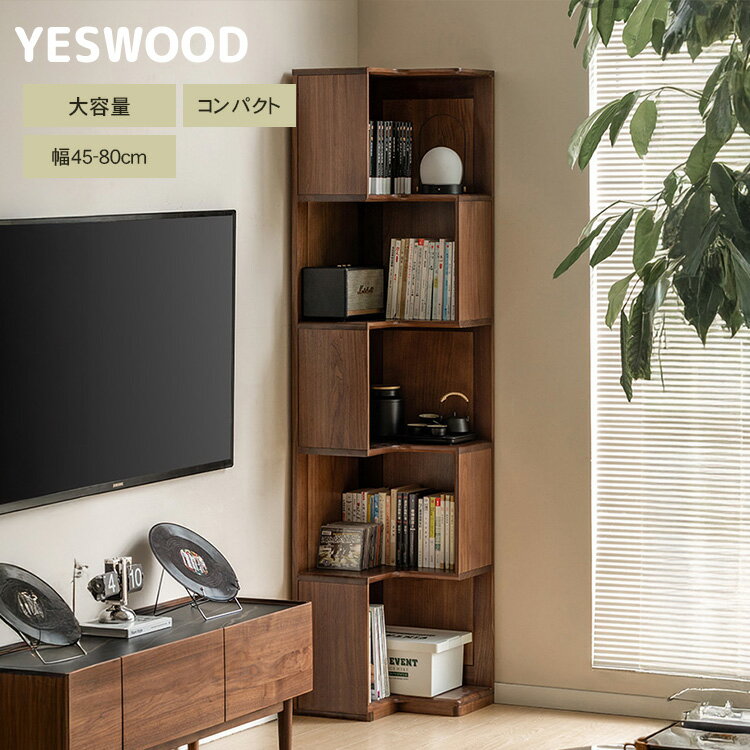 コーナー本棚 木製 幅45cm ラック 58cm 木製ラック 書棚 80cm おしゃれ ブックシェルフ ウォールナット材 オープンスペース キャビネット シンプル コミックラック 大容量 収納 ディスプレイ 木目 漫画 書籍 リビング 書斎棚 無垢材 おしゃれ 可愛い 北欧風 和風 yeswood