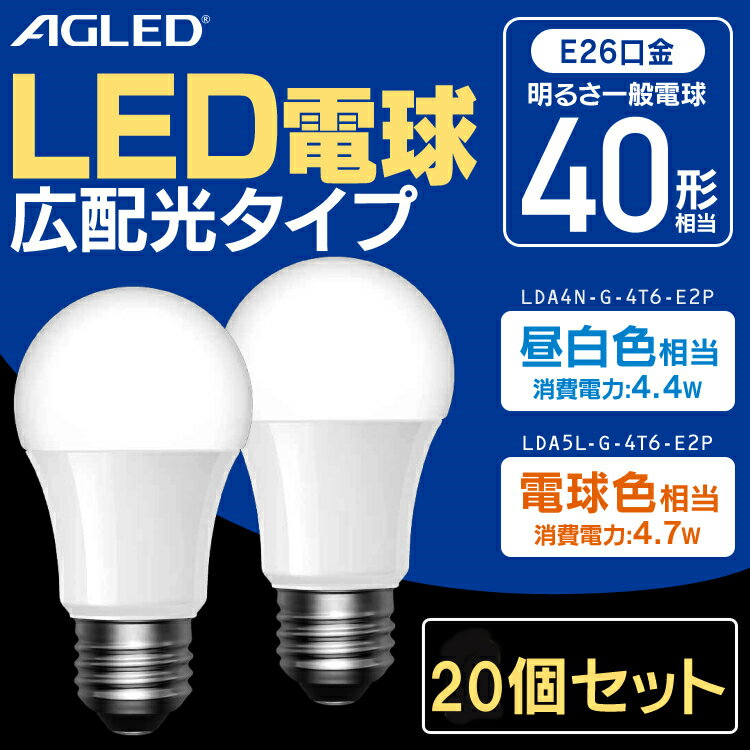 ≪期間限定★15%OFF≫【20個セット】LED電球 E26 広配光 40形相当 LDA4N-G-4T6-E2P LDA5L-G-4T6-E2P 昼白色 電球色 LEDライト 広配光 光 明かり 電気 照明 ライト ランプ ECO 節電 節約 LED 長寿命 密閉形器具 長寿命 26口金 AGLED 照明器具 アグレット[2603SE]
