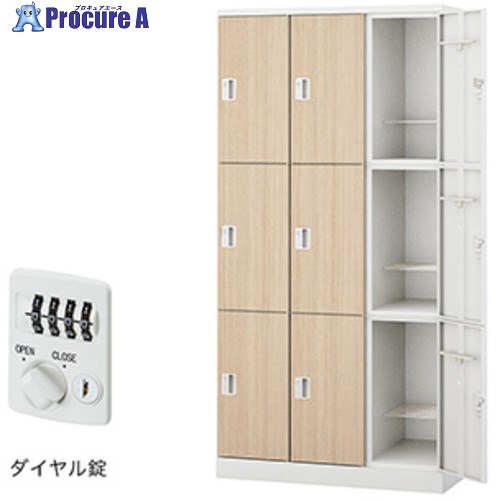 L6 パーソナルロッカー ワイドタイプ(ダイヤル錠) 幅1200×奥行400×高さ1050mm 6人用 下置き 可動式棚板6枚 (648-496)【L6-M105L-6MD】