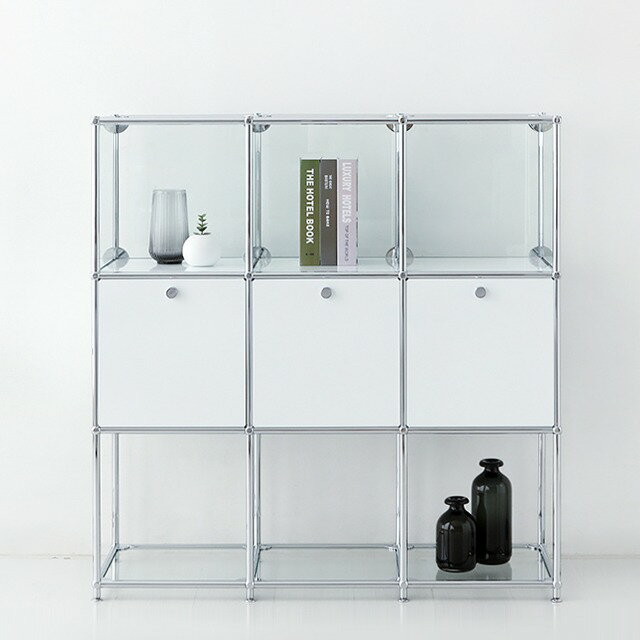 SIMPLIE 3段3列 2扉付き ガラス棚 MD068 収納棚 ホワイト