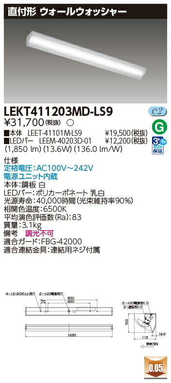 東芝 10台セット LEKT411203MD-LS9 LEDベースライト TENQOO直付40形ウォールW (LEKT411203MDLS9)