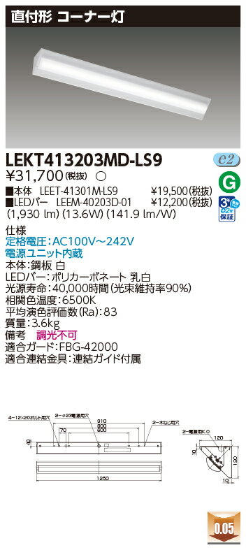 東芝 10台セット LEKT413203MD-LD9 LEDベースライト TENQOO直付40形コーナー灯調光 (LEKT413203MDLD9) 受注生産
