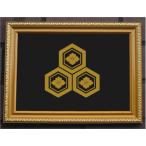 丸に三つ盛り亀甲花菱 金色額入り家紋 縦型 額入りの家紋 丸に三つ盛り亀甲花菱