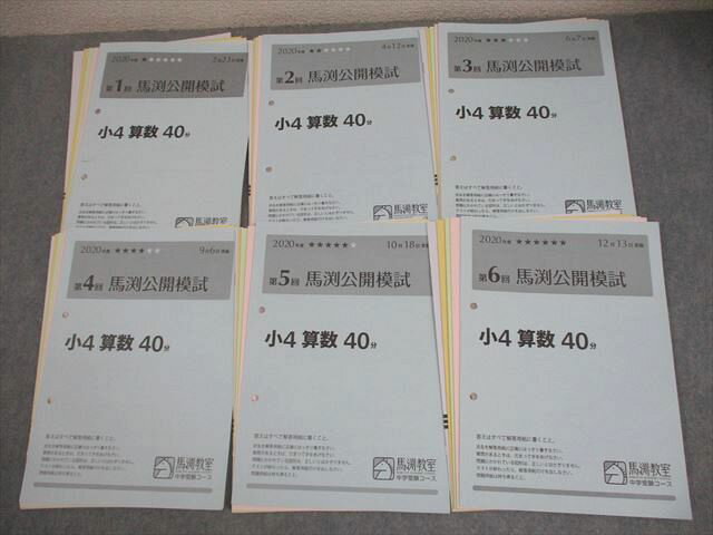 馬渕教室 小4 中学受験コース 2020年度 第1〜6回 馬渕公開模試 2/4/6/9/10/12月実施 国語/算数/理科/社会 023S2D