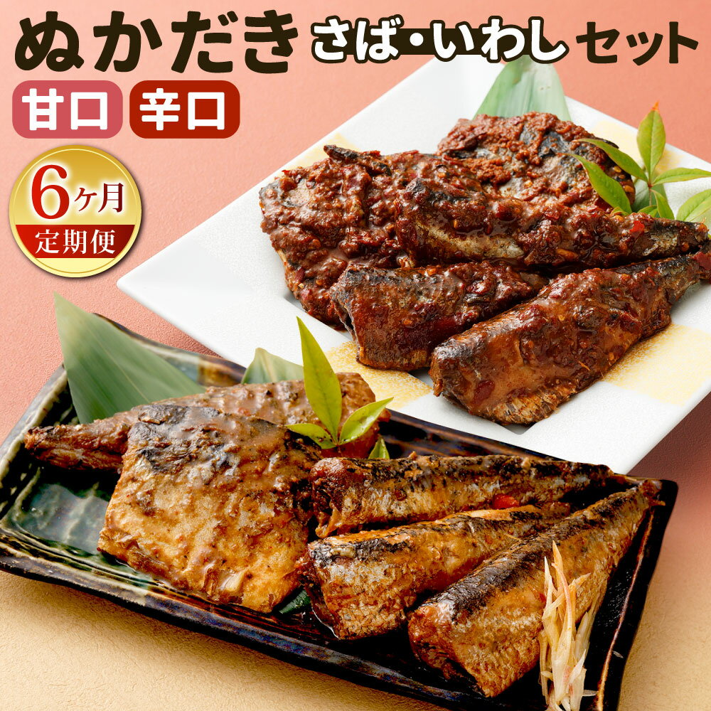 【ふるさと納税】【6ヶ月定期便】【訳あり】ぬかだき 辛口甘口セット ぬかみそだき 辛口さば 辛口いわし 鯖 さば サバ 鰯 イワシ 食べ比べ 惣菜 おかず 真空パック ぬか炊き 【北九州名物】【郷土料理】お土産 おつまみ じんだ煮 北九名物 冷蔵