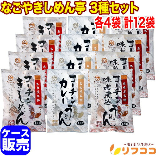 【回数制限無しのレビュー書いて10%OFFクーポン配布中♪】 なごやきしめん亭 食べ比べ 3種アソート (名古屋コーチンきしめん カレーうどん 味噌煮込うどん) 各4袋ずつ 合計12袋セット ケース販売 名古屋名物 名古屋うどん