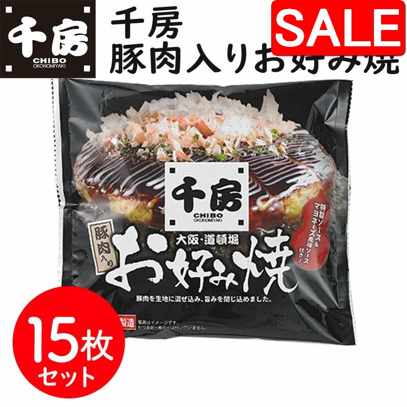 【スーパーSALE 10%OFF!】 千房 豚肉入り お好み焼 15枚セット ギフト 冷凍 千房特製のお好み焼ソースとホワイトソース(マヨネーズ風味)付き