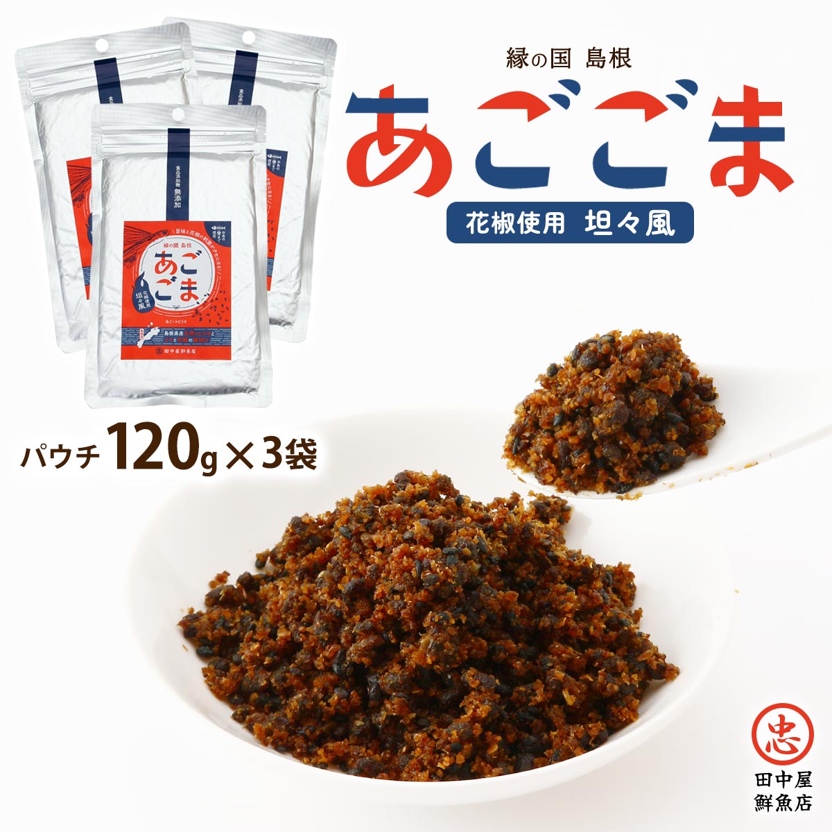 【20%OFF 楽天スーパーSALE限定】あごごま ふりかけ [田中屋鮮魚店] 惣菜 あごごま 奥出雲唐辛子 120g×3 /フリカケ ふりかけ 惣菜 飛魚 トビウオ パウチ お土産 島根県 ソフトふりかけ カルシウム お手軽 健康 お魚