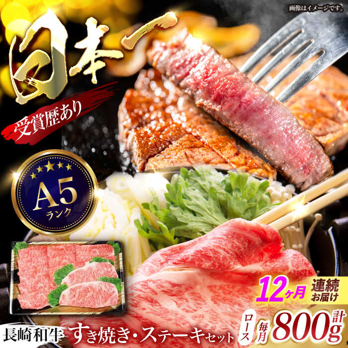【ふるさと納税】【12回定期便】長崎和牛すきやき・ステーキセット 計800g / 牛肉 ロース ろーす すきやき すき焼き ステーキ すてーき 長崎和牛 / 諫早市 / 長崎県央農業協同組合 Aコープ本部 [AHAA029]