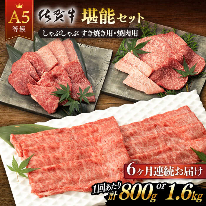 【ふるさと納税】【6回定期便】佐賀牛 A5 堪能セット しゃぶしゃぶ すき焼き用 ・ 焼肉用 (計800g ~ 計1.6kg) 佐賀県嬉野市/桑原畜産 [NAB096]