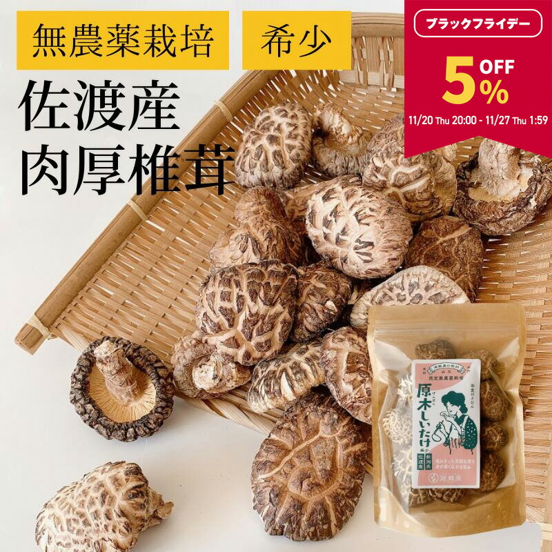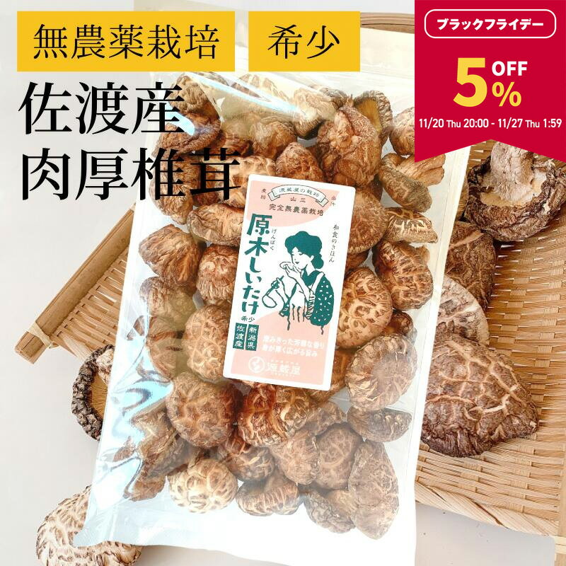 【5%OFF★BLACK FRIDAY限定!27日1:59まで】原木しいたけ 椎茸 肉厚 完全無農薬栽培 新潟県 佐渡産 60g【食卓応援セール】【沖縄配送不可】