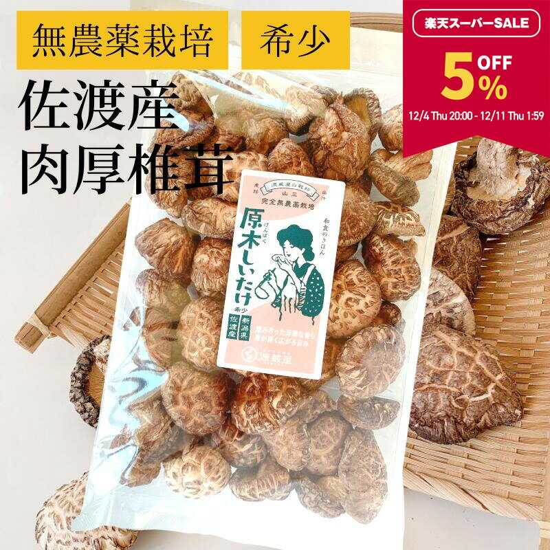【5%OFF★スーパーSALE限定!】原木しいたけ 椎茸 肉厚 完全無農薬栽培 新潟県 佐渡産 60g【食卓応援セール】【沖縄配送不可】