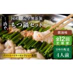 ふるさと納税 モツ鍋 福岡県 糸島市 全12回定期便 国産 ・ 完全 無添加 もつ鍋 セット ×2 ( 約 4人前 ) しょうゆ味 糸島市 / 博多 浜や AFF016