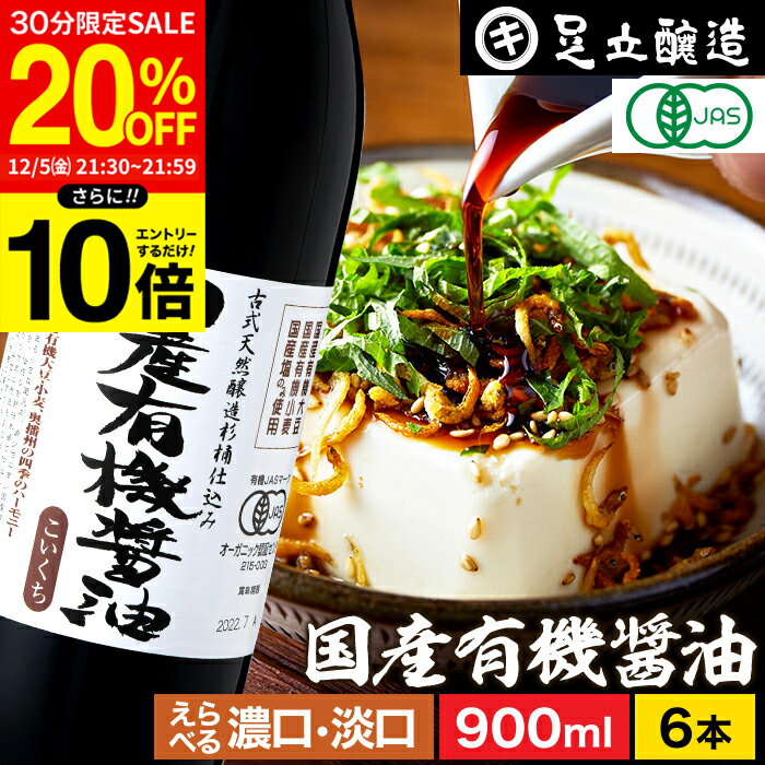 \12/5 21時半~★20%OFF/【エントリーでP10倍】希少な木桶仕込み 有機JAS認定 国産有機醤油 濃口 淡口 900ml×6本 セット 送料無料 足立醸造 木桶 醤油 薄口 しょうゆ 淡口醤油 無添加 有機 無農薬 オーガニック 国産 丸大豆 長期熟成 天然醸造 本醸造 調味料