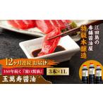 ふるさと納税 醤油 濃口 広島県 江田島市 全12回定期便 リピーター続出の玉萬寿醤油 1L×3本 料理 刺身 濃口 和食 料理 醤油 しょう油 しょうゆ お醤油 セッ…
